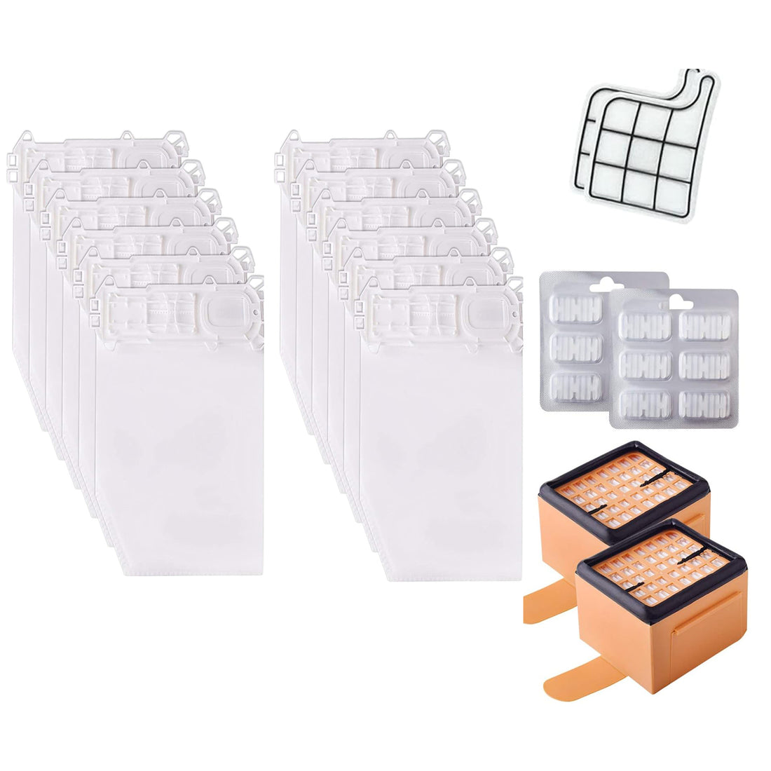 12 SACCHETTI+12 PROFUMI+2 HEPA+2 GRIGLIE MOTORE PER ASPIRAPOLVERE FOLLETTO VK 135-136